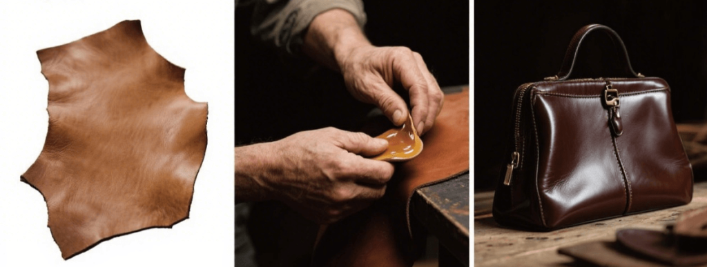 Dyeing comes next. Aniline dye preserves the natural markings of the leather, giving it a authentic look, while pigment coating provides uniform color coverage. Many luxury brands use a combination of both to achieve depth and consistency.