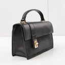 This handbag is made from Genuine Leather with crocodile embossed side panel, gold metal handle and lock clasp. It is chic and sophisticated style, perfect for organizing daily items. It suits for business meetings or casual outings.